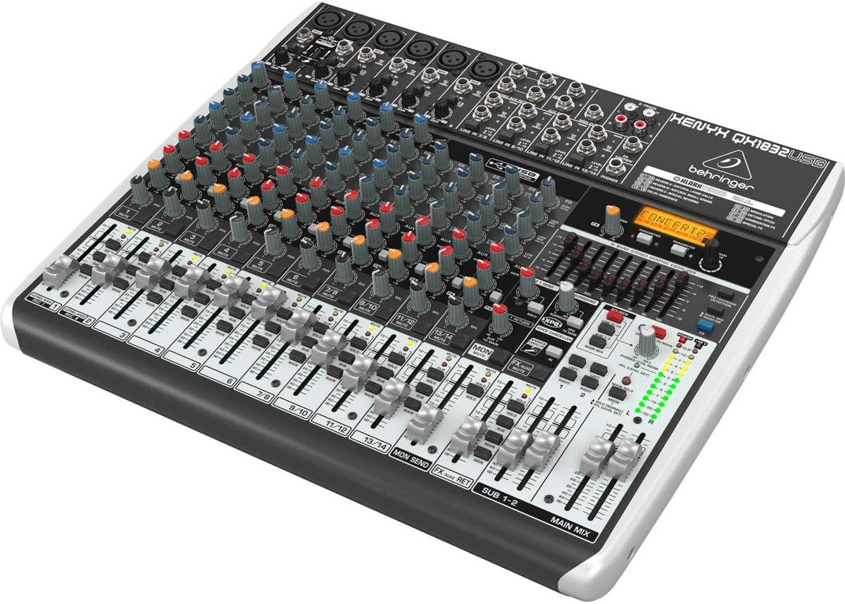 The Behringer Xenyx QX1832USB Premium 18-Enter 3/2-Bus Mixer lets you effortlessly obtain premium-quality sound due to its 6 onboard studio- grade Xenyx Mic Preamps and ultra- musical “British” channel EQs – with a semi-parametric mid band for heat and musical sound. And the easy-to-use “one-knob” compressors present complete dynamic management for the last word in punch and readability, whereas respecting all the ability and emotion you pack into each be aware. Add to this the KLARK TEKNIK FX processor with 32 studio-grade presets with twin addressable parameters, Faucet perform and storable consumer parameter settings – and the QX1222USB turns into an extremely versatile mixer on your stay performances.However the Xenyx QX1832USB is not simply designed to deal with your stay gigs; additionally they present the state-of-the-art instruments it’s good to make gorgeous, professional-quality recordings. Together with their built-in USB/audio interfaces, the Xenyx QX1832USB comes with all of the recording and modifying software program wanted to show your laptop system into a whole, high-performance residence recording studio. Sonically Superior Mic Preamps The Xenyx QX1832USB will get its title from the legendary, excessive headroom Xenyx mic preamps, which have been praised by audio engineers everywhere in the world. These state-of- the-art mic pres characterize a significant step within the evolution of audio know-how – and so they can simply maintain their very own, even when in comparison with the most costly stand-alone mic preamps. Xenyx pream